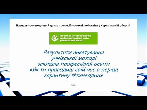 Психологічною службою НМЦ ПТО у Чернігівській області було проведено опитування "Як проводять свiй час учнi закладiв профтехосвiти областi пiд час карантину? Вам цiкаво?" На основі опитування Інформаційною службою НМЦ ПТО у Чернігівській області створено відеоролік. До вашої уваги!